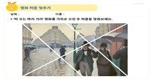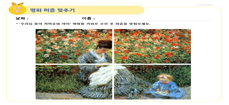 내가 하는 일 중에서 매주 교사들이 만든 자료를 확인하는 일도 있다. 위의 자료를 집으로 가져간 봄 반 유아의 부모님은 무엇인지 알 것이다. 우리가 매주 감상한 명화를 스스로 잘라서 다시 재조합하여 붙이는 놀이 종이이다. 위의 그림이 3월 초에 만든 자료이고 아래의 그림이 이번 주에 만든 자료이다. 무엇이 달라졌는지 눈치챘을 것이다. 나는 어제 “선생님 이제 이렇게 오려도 할 수 있어요? 정말 많이 달라졌네요.”라고 말했다.