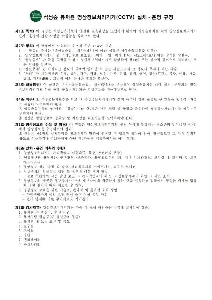 석성숲유치원 영상정보처리기기(CCTV) 설치ㆍ운영 규정